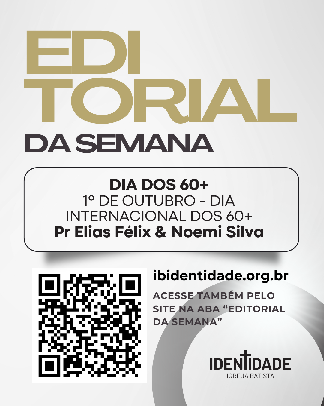 Neste espaço de Editoriais da Semana, você terá acesso a conteúdos relevantes para a sua vida espiritual e orientações sobre as atividades desenvolvidas por nossa igreja. Contaremos com uma diversidade de temas escritos por nossos pastores e líderes, abordando questões atuais, ensinamentos bíblicos e mensagens de encorajamento.